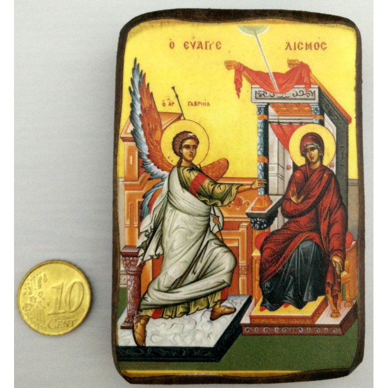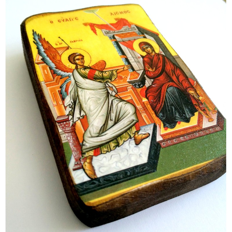 Wooden Greek Christian Orthodox Wood Icon of the Annunciation / A0