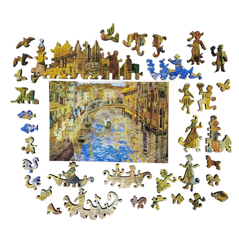 Wooden Jigsaw Puzzle for Adults - Uniquely Shaped Pieces - Made in The USA by FoxSmartBox - 435 Pieces - Venetian Canal Scene