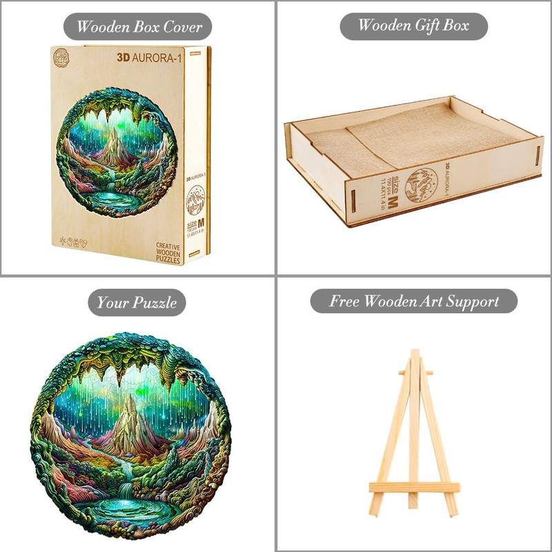 - [Wooden Jigsaw Puzzles] - This wooden jigsaw puzzle shows the breathtakingly beautiful Aurora Borealis sky inside a circular cave in three dimensions, filling the sky and painting a stunning picture with the mountains and rivers! The wooden jigsaw puzzle consists of 190 unique irregular shapes, high difficulty wooden puzzles are very challenging and make puzzle time more fun and enjoyable. Our store puzzles are available in 3-4 sizes to meet the needs of puzzle enthusiasts of all levels.