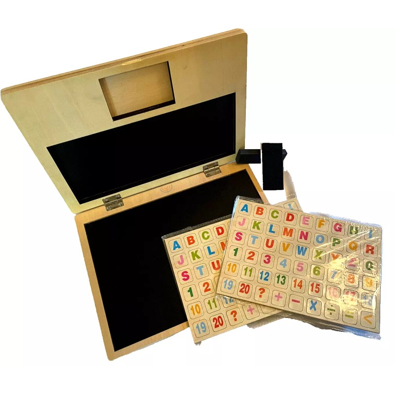 Wooden Magnetic Chalkboard W/Letters & Numbers, Portable, Travel Case, STEM