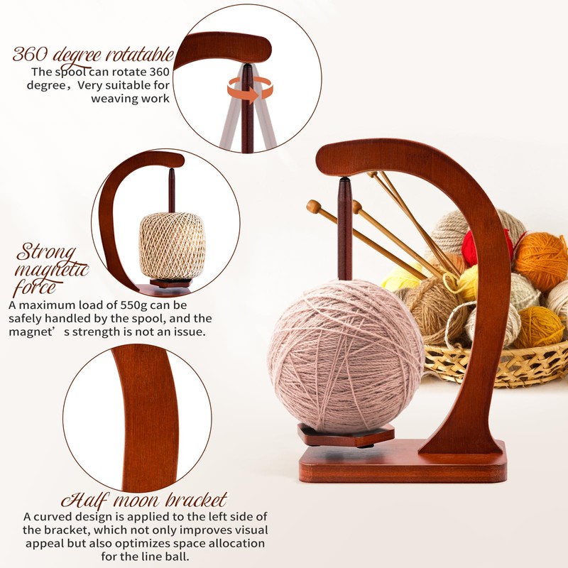 - Premium Wooden Construction & Sturdy Design:Yarn holder crafted from durable natural wood, this yarn holder combines a semi-circular bracket and a rectangular base for stability. The screw-connected joints ensure long-lasting assembly, making magnetic yarn holder a reliable tool for daily crafting.