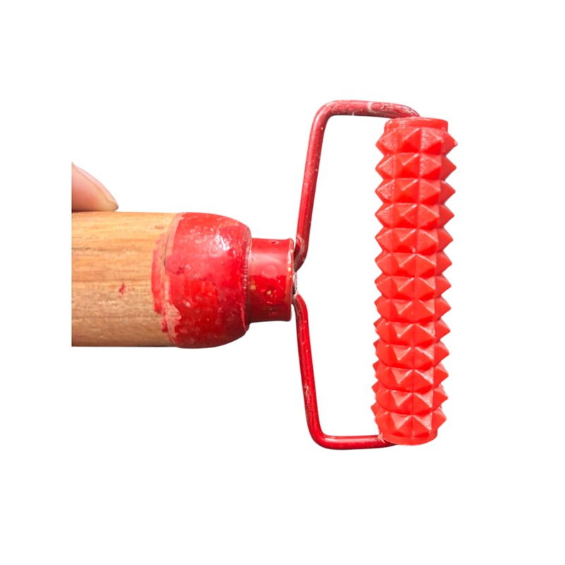 Wooden Massage Roller with Textured Handle, Red Acupressure Body Massager Tool
