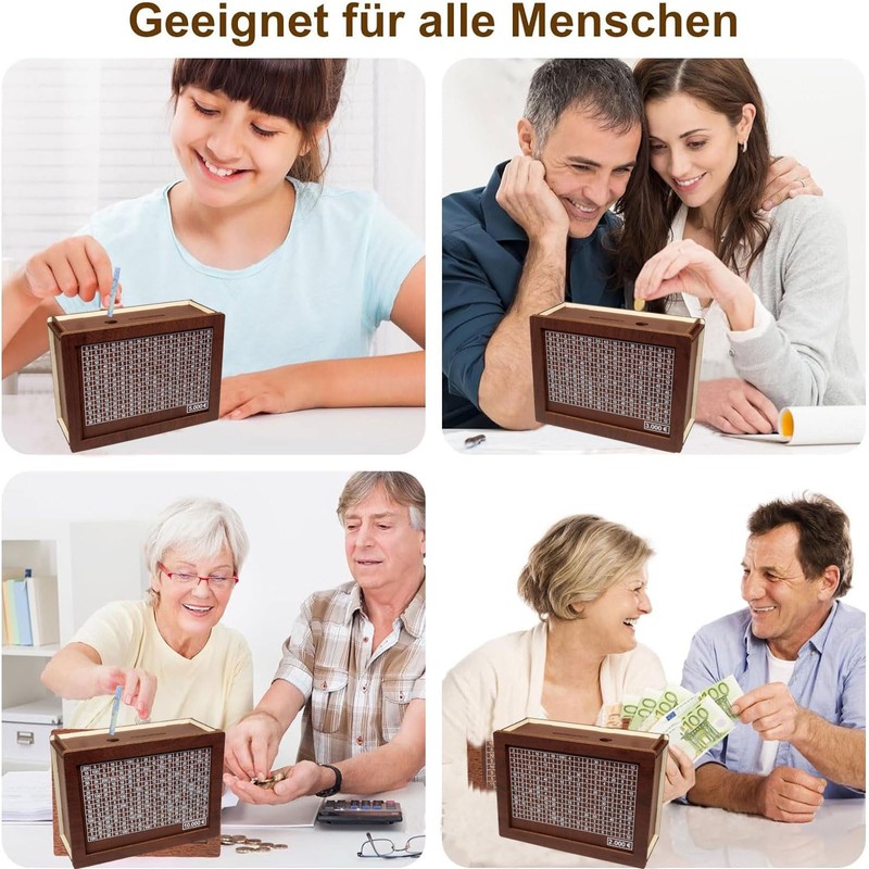Wooden Money Box with Numbers Checks, Piggy Bank, Reusable Money Box, Retro Money Box, Storage Box, Wooden Money Box with Savings Target, Money Box 10,000 Euro for Adults and Children