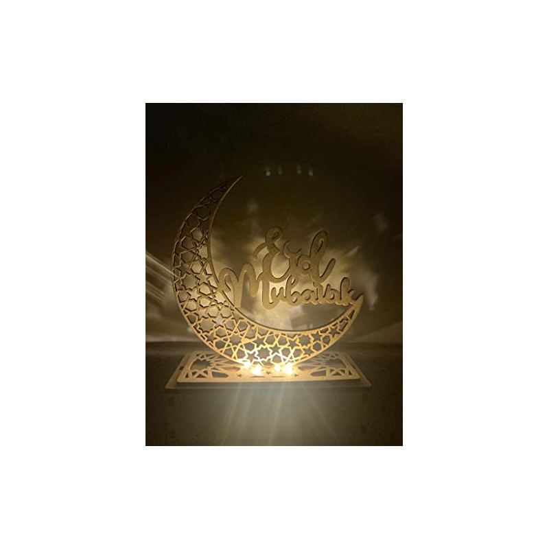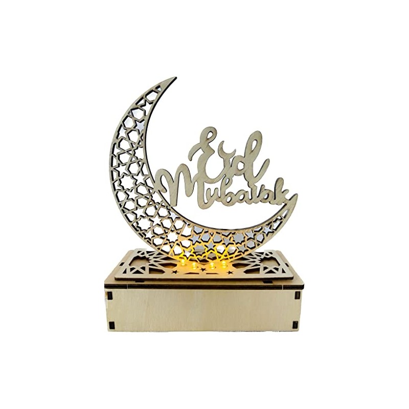 Wooden Muslim Design Ramadan Eid Decorative Lamp Moon Crescent Night Light Home Desktop (Eid Mubarak) 3D DIY model