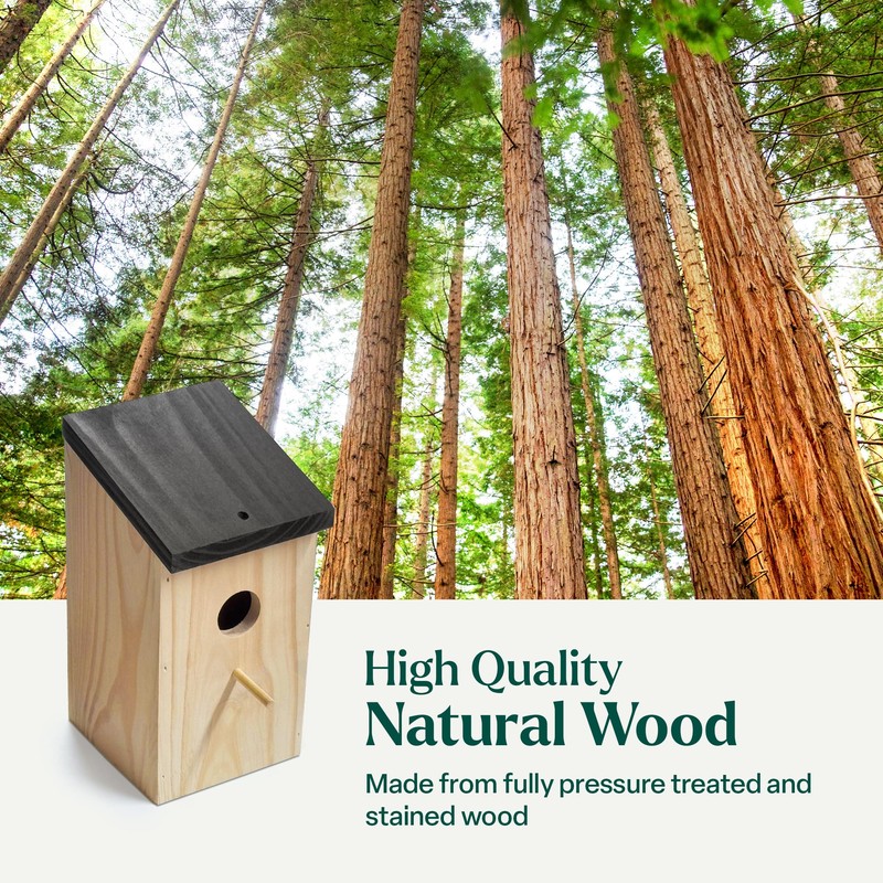 - Material: Made from fully pressure treated and stained wood; Natural & Durable wooden construction; This bird house last for many seasons allowing you to get a long life out of the product; Tough, protects birds from predators all year round