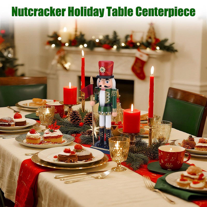 - Charming Traditional Design – This 14.4-inch wooden nutcracker figure features a classic green uniform with gold shoulder accents, a tall red hat with a golden emblem, and a detailed painted face, the Xmas nutcracker exudes the regal charm of a royal guard