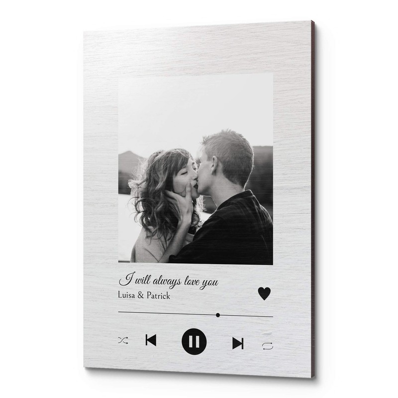 Wooden photo for hanging in song cover design | with music title, artist, name or other dedication gift idea for partner, friend family | modern wall decoration