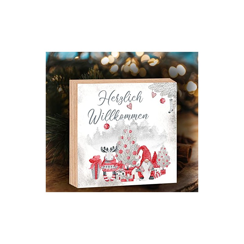 • ✔️ Beautiful image on a coated birch wood. The Christmas motif with the cute gnomes beautifies your entrance area, living room or other rooms. This cube is also perfect as a gift.