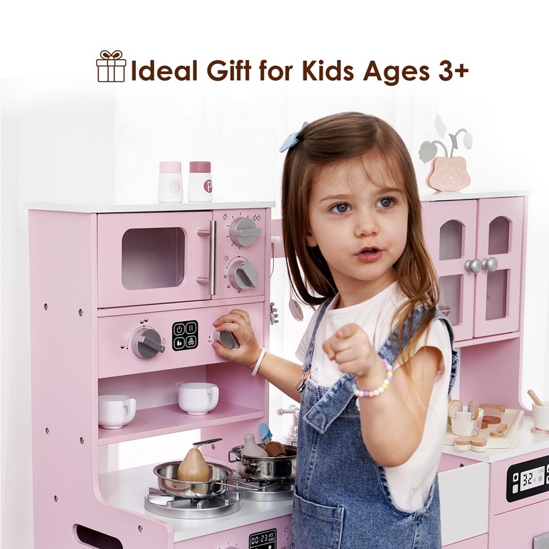- Safe & Durable Quality: Crafted from non-toxic wood with smooth, rounded edges, this play kitchen meets stringent safety standards. Built to withstand active play, giving parents peace of mind