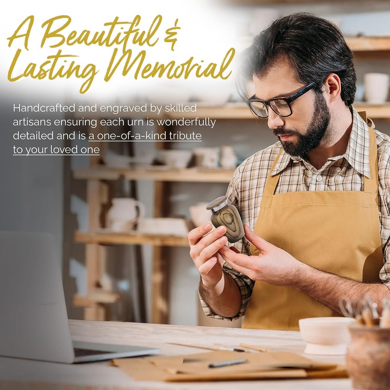 - High quality & durable urns: These beautiful wooden funeral urns for adults are solid and made of high-quality aluminum. The intricate ash urn design is handmade by highly skilled craftsmen using traditional time-honored techniques. You can be rest assured that these small cremation wooden urns for ashes will last generations.