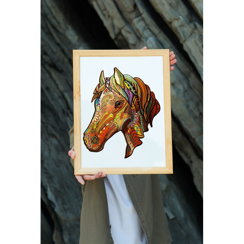 Wooden Puzzle Adults, KAAYEE Puzzle Wood, Wooden Puzzle Irregular Unique Shape Puzzle Pieces, Wooden Puzzle Animal Shape, Wooden Puzzle with Wooden Gift Box (Horse, L)