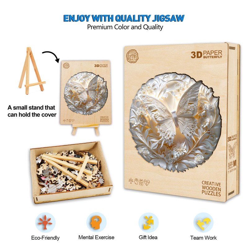 - 🌲【The Perfect Gift】: This 3D paper butterfly puzzle is beautifully wrapped in wood box and is ideal for birthdays, Christmas, Mother's Day, Father's Day, New year's Day, anniversaries and other special occasions
