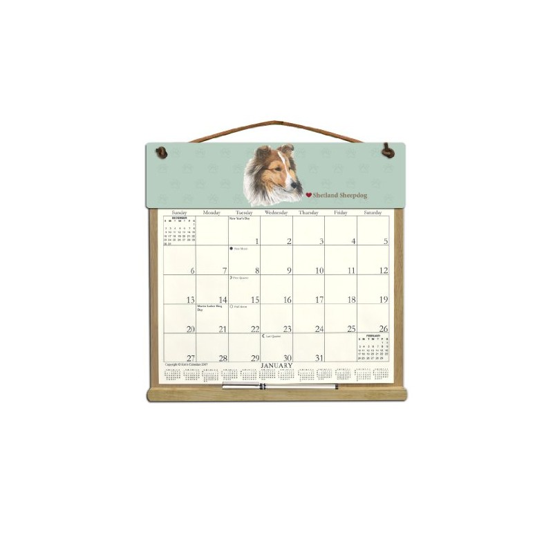 Wooden Refillable Sheltie Calendar Holder filled with a 2025 calendar and inc...