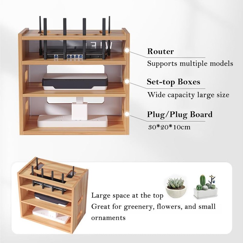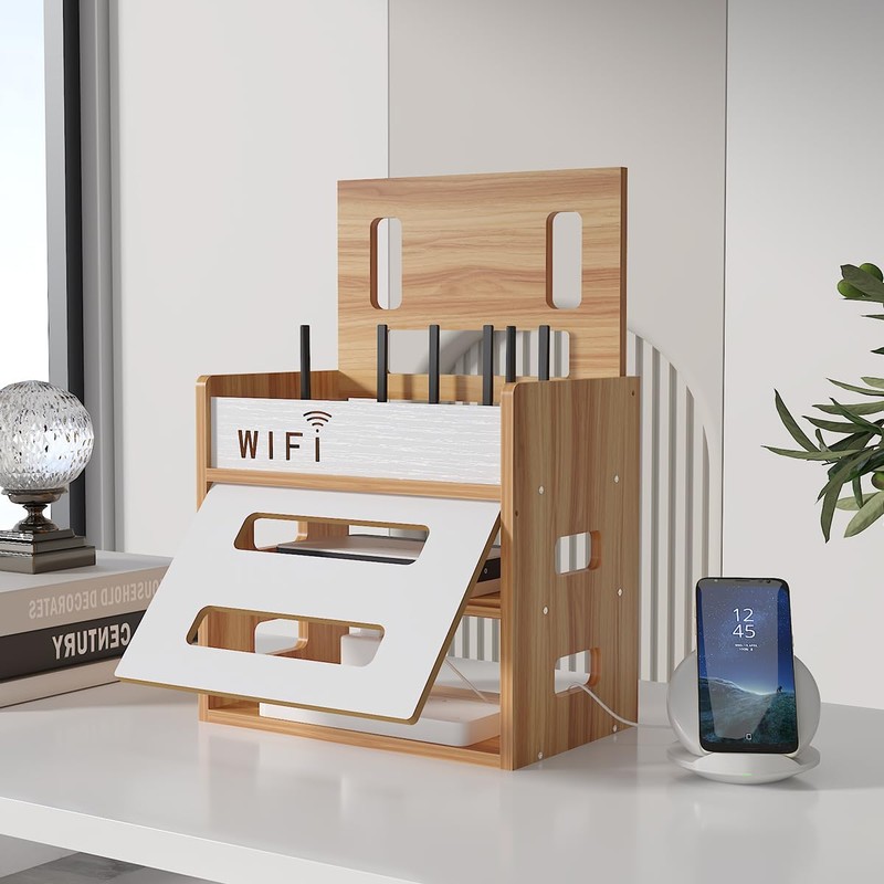 2. This router storage box is made of high quality wood, which is very sturdy and has a high load-bearing capacity.