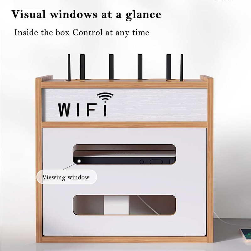 - 【Perfect Design】The switch door design under the router storage box makes it more convenient to place items. The door is designed with a hollow buckle and a carved partition, and the four sides are hollowed out, so there is no need to worry about heat dissipation.