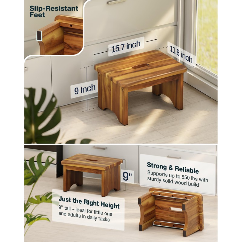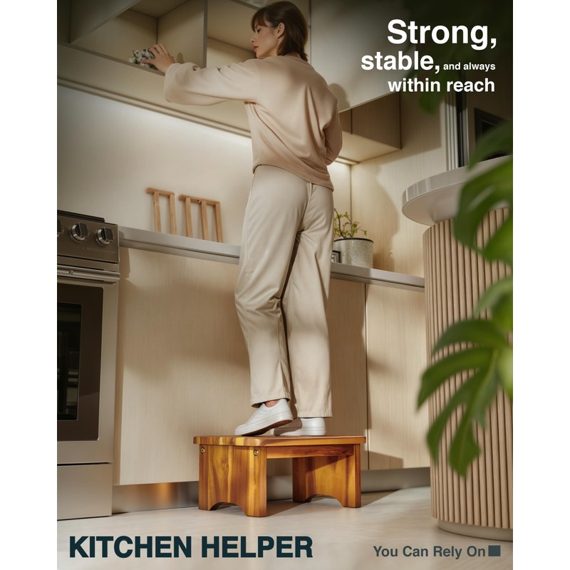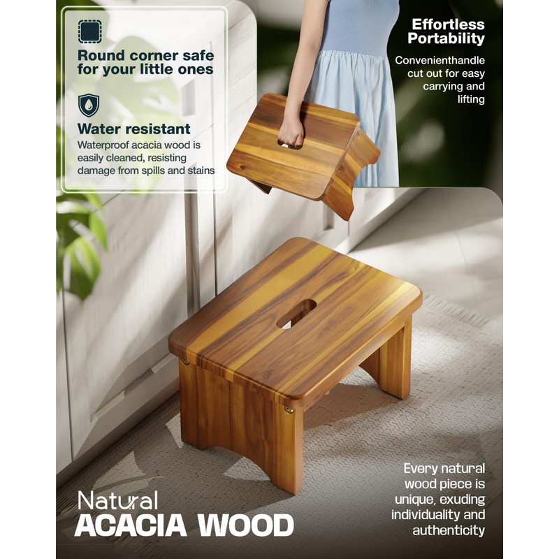 - 🌳 NATURAL ACACIA WOOD: Discover the enduring charm of Acacia wood in our step stool. Crafted for robustness, water resistance, and anti-warping, it's a functional and aesthetically pleasing addition to your space. The distinct wood grains make each stool unique, celebrating the beauty of nature in your home.