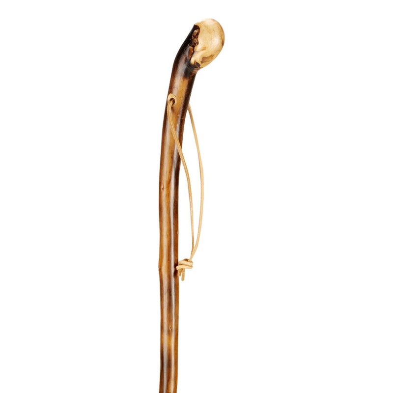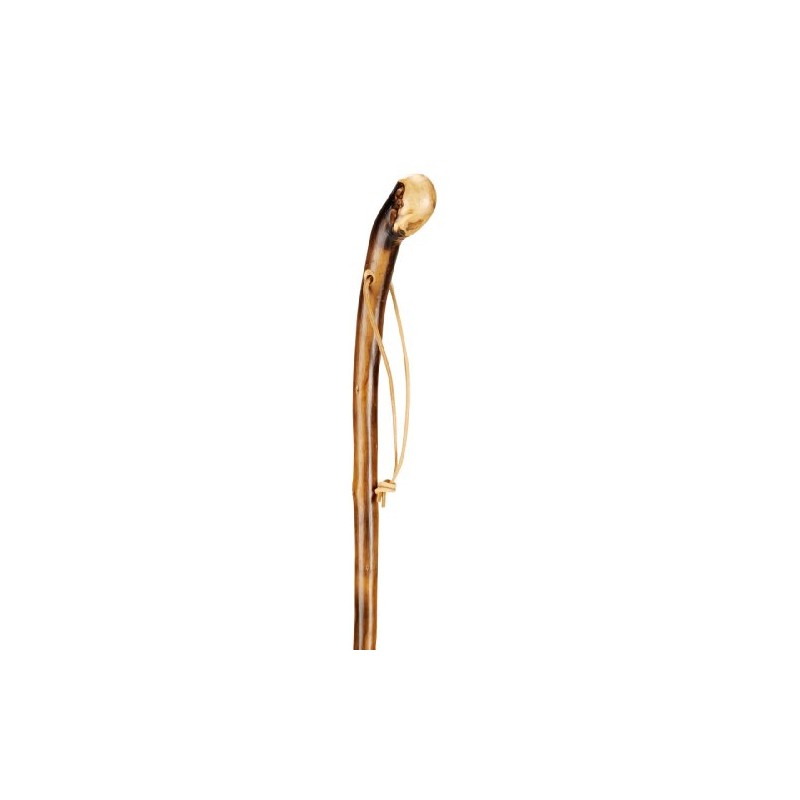 The walking stick is made of flamed chestnut wood and has been bent from one piece. The shepherd's stick has a useful, but also decorative leather loop on the handle. With this shepherd's stick, you can also walk on soft and uneven meadows and forests and enjoy nature.