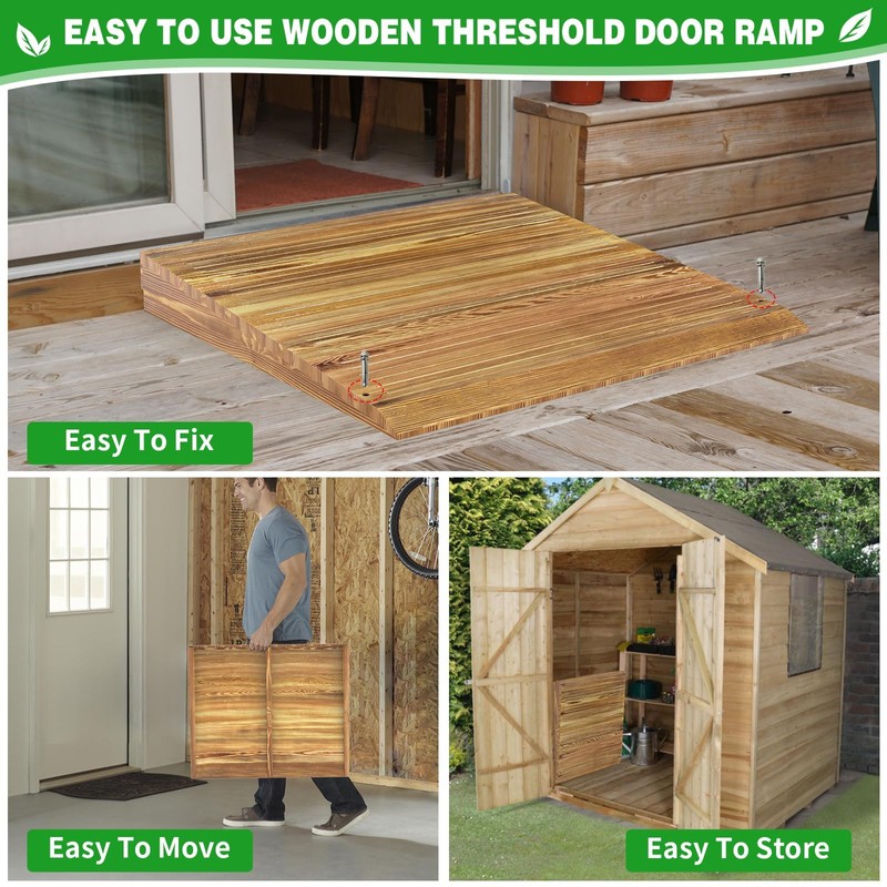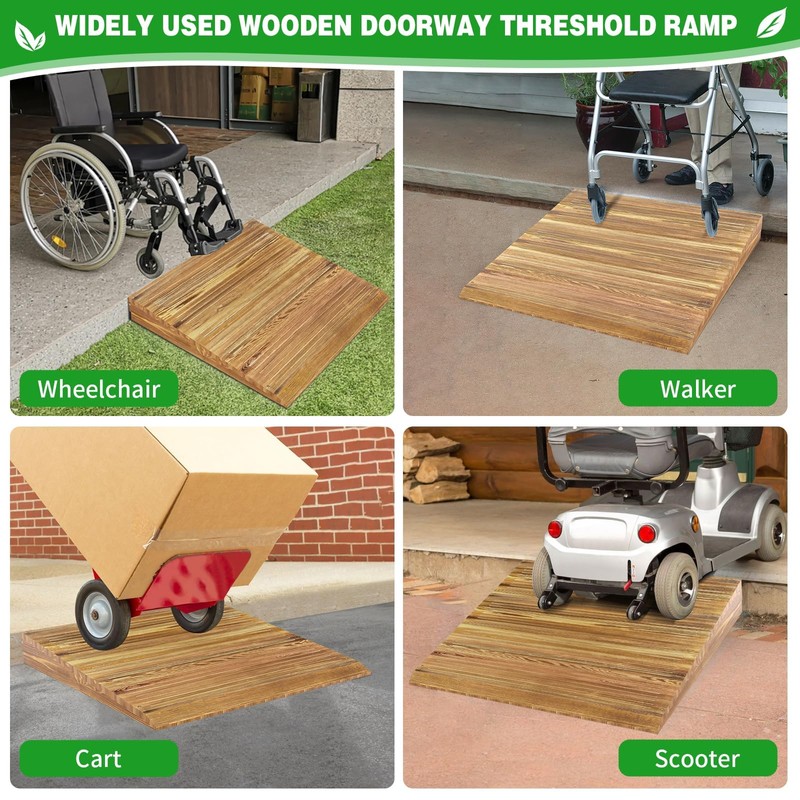 - [Widely Used Wooden Wheelchair Ramp]: Designed to provide accessibility for people with mobility issues, our wooden threshold ramp is suitable for both indoor and outdoor use. It ensures safe access to doorways, steps, patios, porches, sheds, and more.
