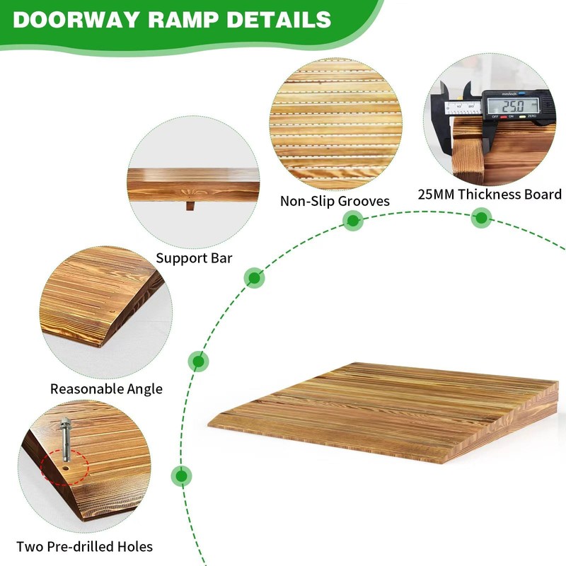 - [Secure & Stable Wooden Doorway Ramp]: Featuring non-slip grooves on the surface, our ramp enhances friction and prevents slipping accidents. A support bar underneath ensures stability, allowing the safe passage of wheelchairs and carts without deformation.