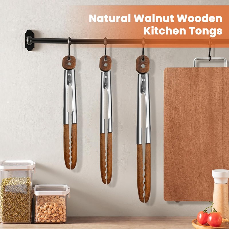 - 【 Elegant & Functional Kitchen Essential 】Beyond their practical utility, these tongs add a touch of rustic elegance to your kitchen. Their stylish walnut and steel design makes them suitable for both everyday cooking and serving guests at the table, seamlessly transitioning from stove top to dining table