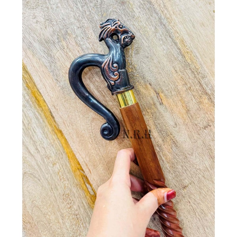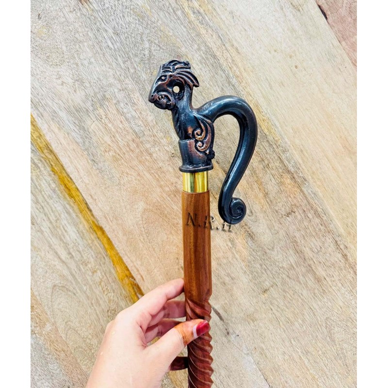 Wooden Walking Cane with Brass Handle | Handmade Walking Cane | Decorative Walking Canes | Walking Cane for Man and Woman Active (Walking Cane With Dragon Handle)