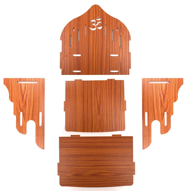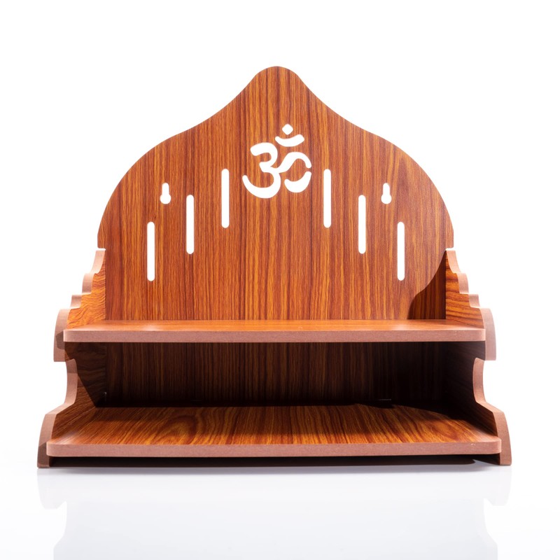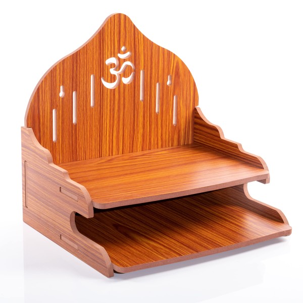 Wooden Wall Mounted Hanging Table top Temple Pooja Mandir God Stand Shelf for Storage and Idols Decoration for Home Office and Gifting (Brown- Design2)