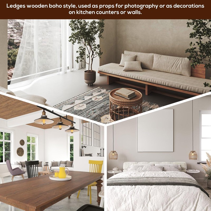 - High-quality materials: made of natural pine wood, this Bohemian style wall shelf is robust and durable and ensures long-lasting use. Each piece is handmade by craftsmen and reflects exquisite craftsmanship and unique wood grain, making your home decor warmer.