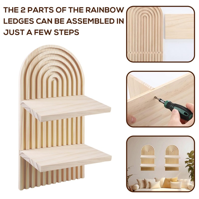 - Aesthetic design: wall shelf with a Bohemian rainbow arch design that combines retro and modern art styles and gives your home decoration a unique sense of fashion. Whether in country house style or modern, it will be the highlight of the room.
