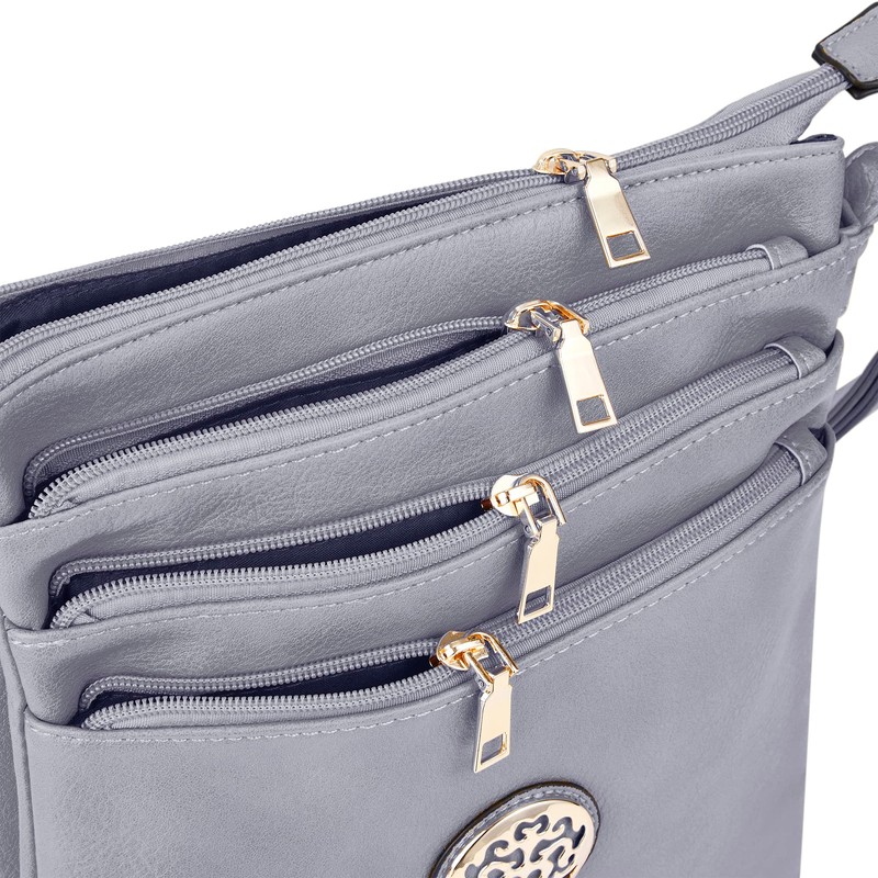 Woodland Leathers Crossbody Bags For Women, Multi Zipper Spacious Cross Body Bag Women With Adjustable Crossbody Strap, Golden decorated Women's Hobos & Shoulder Bags (Grey)