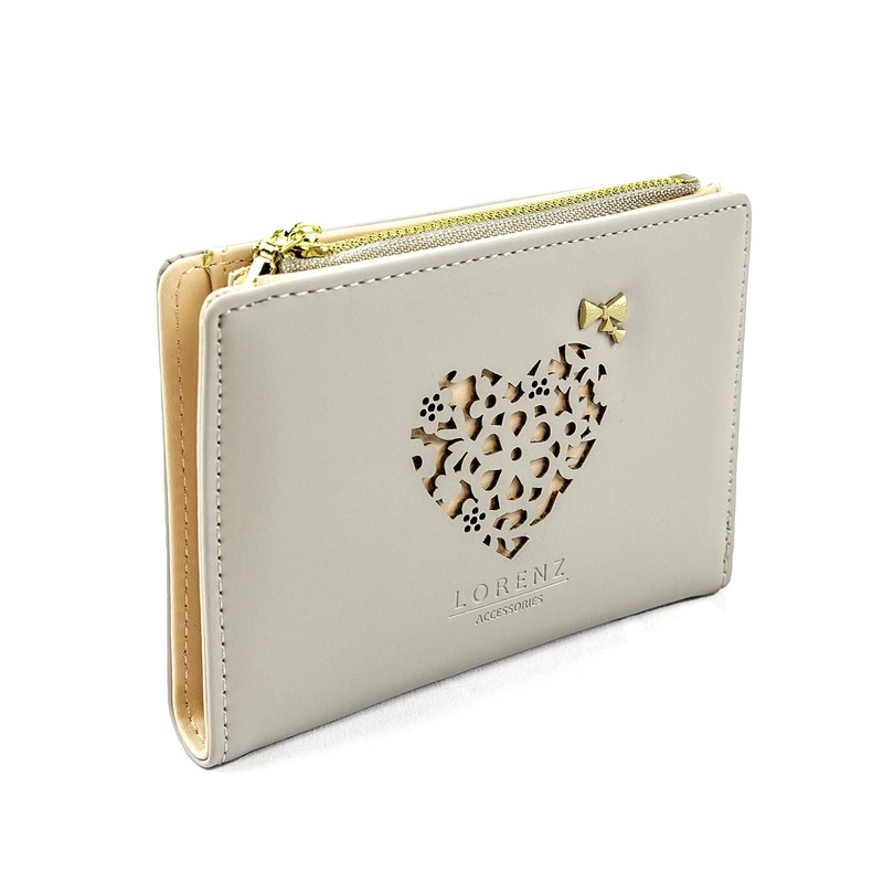 Woodland Leathers Women's Wallet and RFID Card Holder with Decorative Heart Pattern, Bifold Faux Leather Lady Zipper Purse Button Wallet with Multiple Card Slots and Roomy Compartment (Cool Grey)