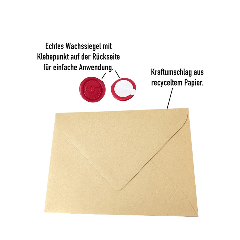 - Comes with a plain brown envelope and a genuine handmade red wax seal. This gives the card a special touch and makes it even more interesting. Made in Germany.