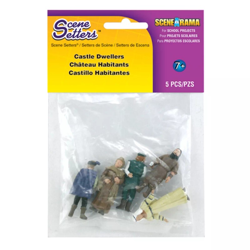 Castles served as both a home for the lord who owned the surrounding land and as a place of protection for his family and the residents of the land called serfs. Serfs farmed the lord's land to feed themselves and the residents of the castle or they worked in the castle. Assorted medieval characters enhance any castle or courtyard diorama.