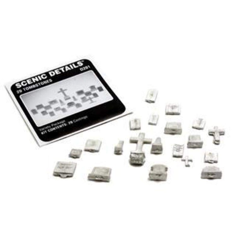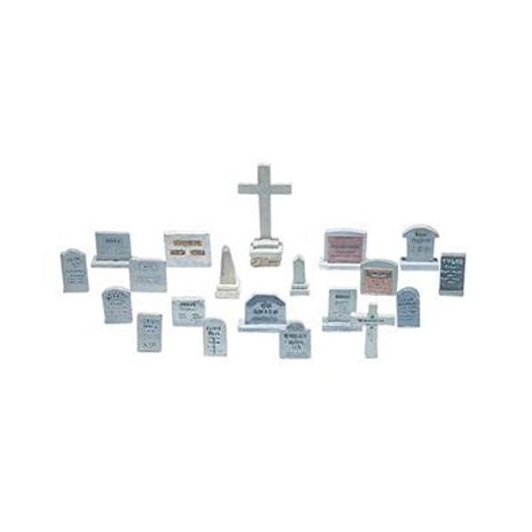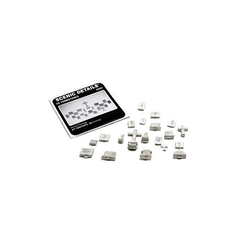 FEATURES: Thoroughly researched and finely crafted HO scale reproductions. Highly detailed white metal castings. Each of these replicas is fantastic and neat looking Different shapes and sizes of tombstones with dates and other writing Add color, interest, and authenticity to your layout Easy to follow instructions.