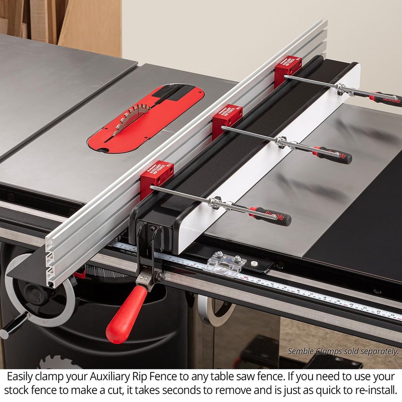 - EFFORTLESS SETUP & COMPATIBILITY - Securing the Auxiliary Rip Fence to your existing table saw fence is simple, thanks to precision-machined aluminum clamping blocks. Just use standard track clamps (not included).