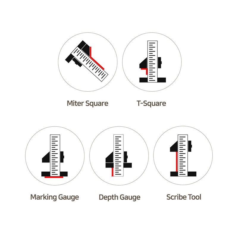 - ✔️ MULTI-FUNCTION (MEASUREMENT AND MARKING) - With one woodraphic caliper you can do 5 different things! From measuring 45 degrees, 90 degrees, depth, width to drawing lines. You can gauge the thickness and depth of the object just like any other vernier calipers but also you can check the angles with combined miter and t-square. You can mark the object by utilizing the main scale as a ruler. Experience easier measure and marking with woodraphic’s all in one caliper!