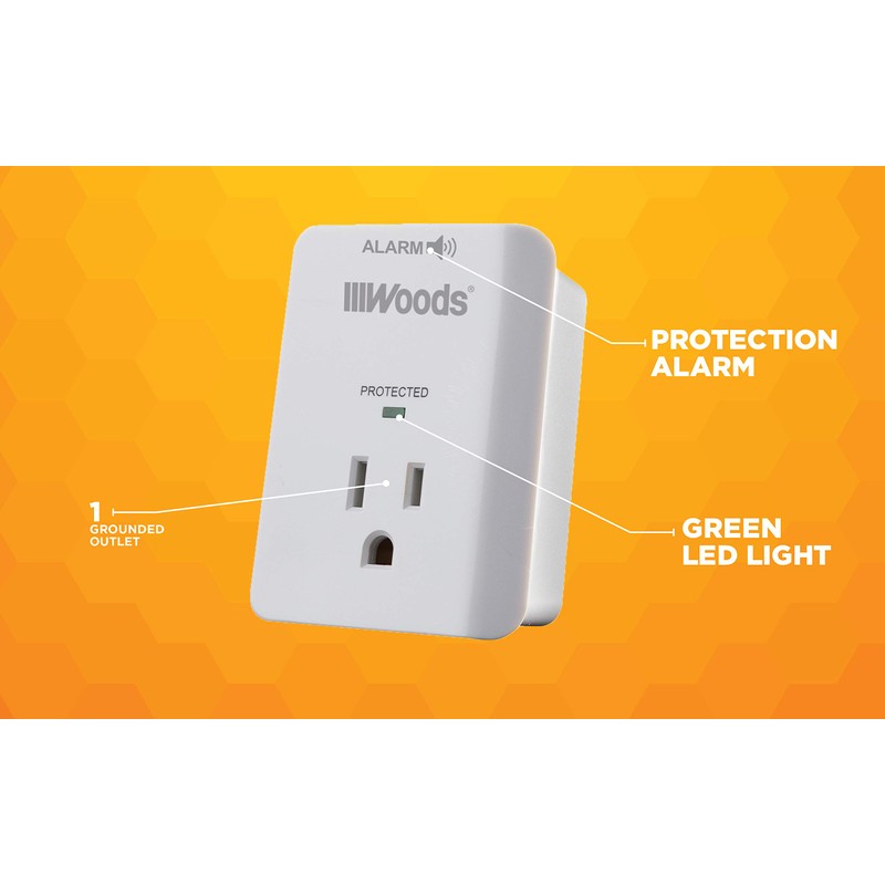 Woods 41008 Surge Protector One 3-prong Power Outlet LED Indicator Light and ...