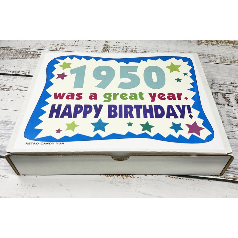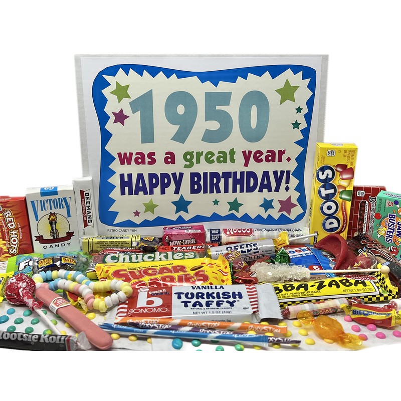 RETRO CANDY YUM ~ 1950 75th Birthday Gift Basket Box of Nostalgic Retro 50s Candy from Childhood for 75 Years Old Man or Woman Born 1950