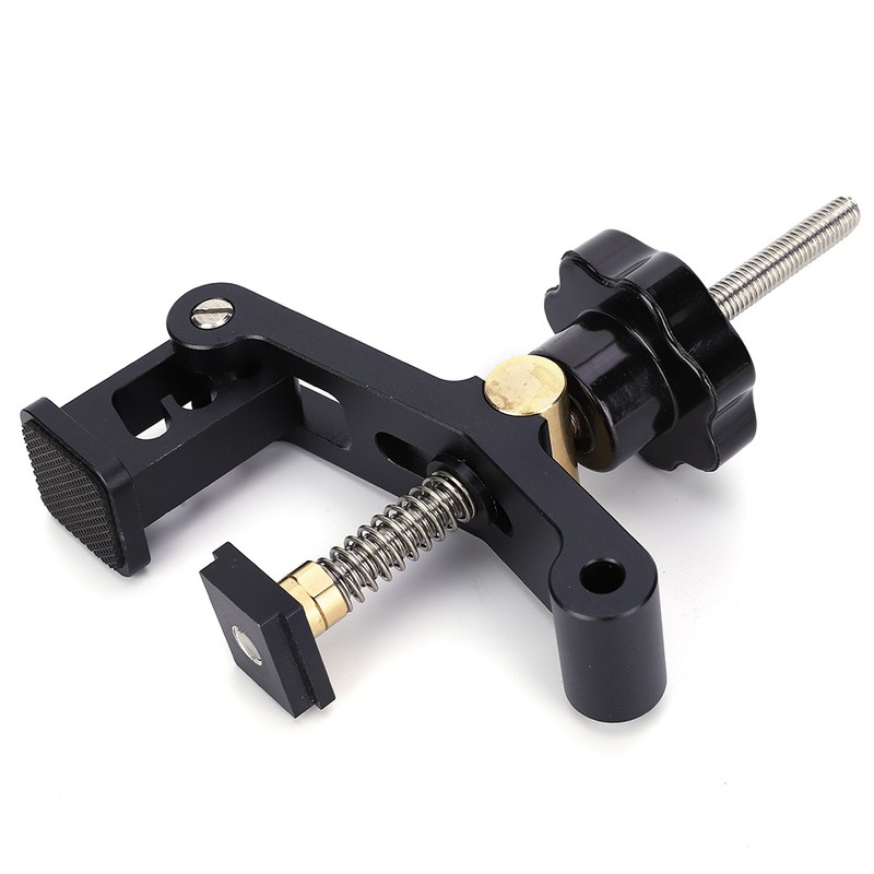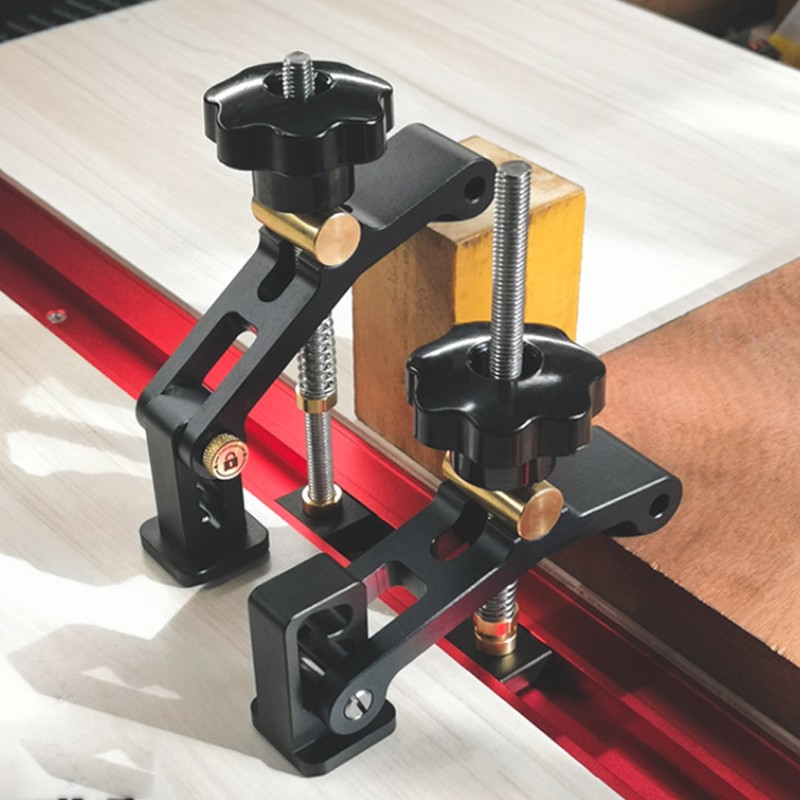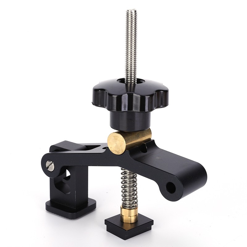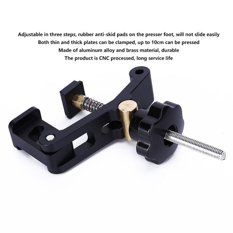 1、Adjustable in three steps, rubber anti-skid pads on the presser foot, will not slide easily 2、Both thin and thick plates can be clamped, up to 10cm can be pressed 3、Made of aluminum alloy and brass material, durable 4、The product is CNC processed, long service life 5、High quality and great workmanship, good tool for woodworking