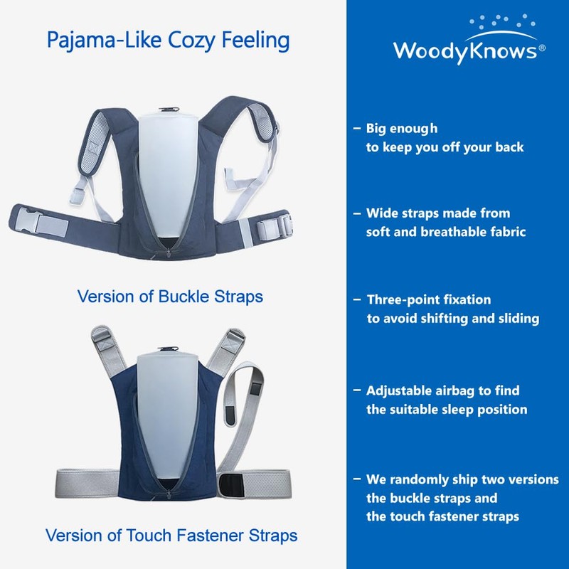 WoodyKnows Side-Sleeping Backpack, Sleep Position Trainer, alleviates snoring Caused by Throat Issues (Large 1 Pack)