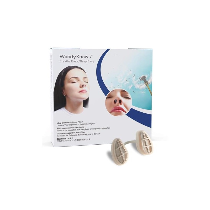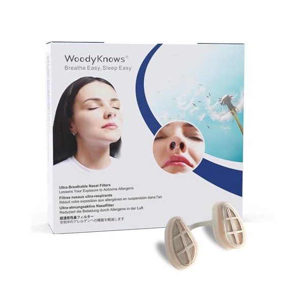 WoodyKnows WoodyKnows 3 Ultra-Breathable Nasal Filters with 12 Pairs of Replacement Filters, Seasonal and dust Allergies aid (Narrow, Medium, 3 Filters+12 Replacements)