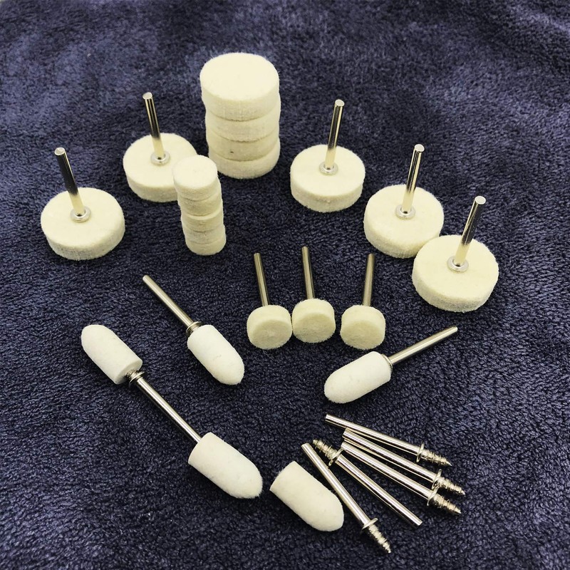- Material: made of top quality wool, high quality compressed-wool felt wheels substantially better durability and more cut than cloth wheels. Polishing wheel diameter: 25mm, 14mm, 10mm, 8mm.