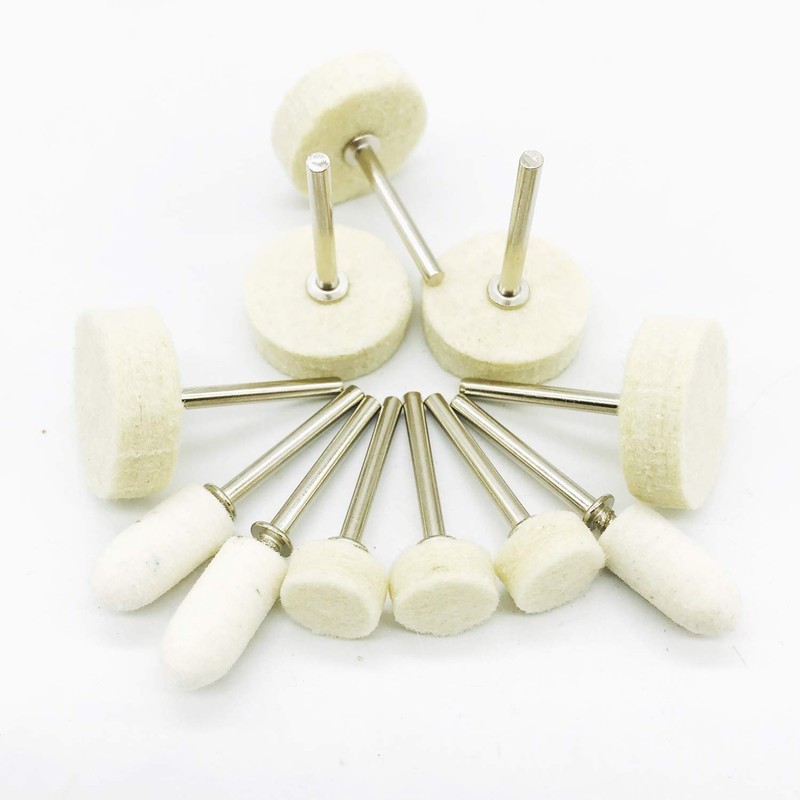 - Material: made of top quality wool, high quality compressed-wool felt wheels substantially better durability and more cut than cloth wheels. Polishing wheel diameter: 25mm, 14mm, 10mm, 8mm.