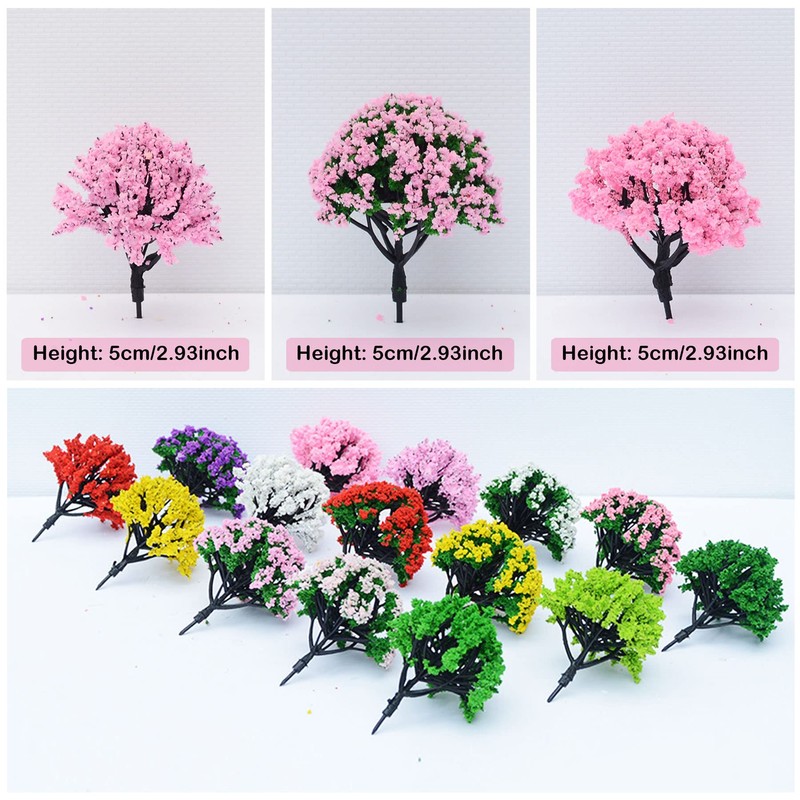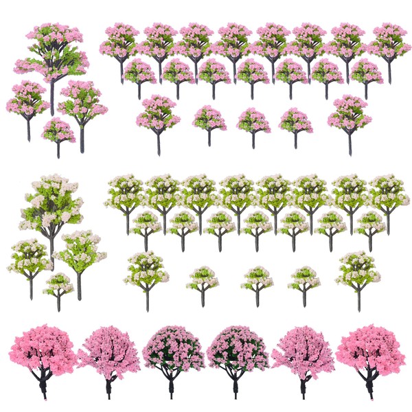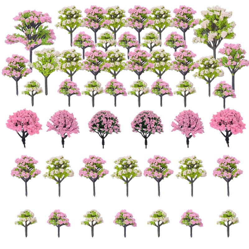 Woohome 50 PCS Miniature Trees Mixed Model Trees Pink Accessories Model Train...