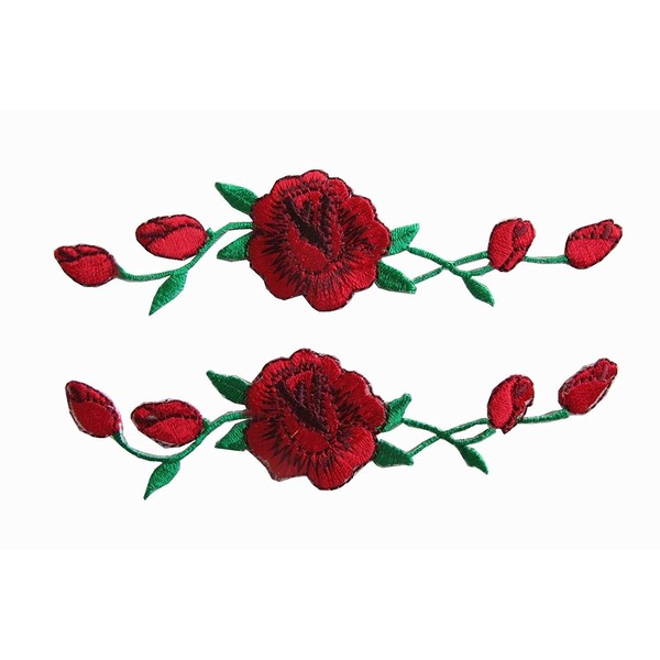 Woohome Iron on Patches, 2 PCS Rose Flower Patch Embroidered Iron on Applique Patch for Craft, Sewing, Clothing, Other Fabrics