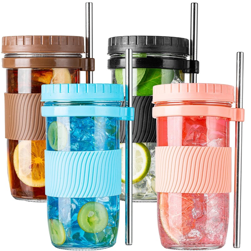 - 【Portable】The smoothie cups of the lids has stronger sealing performance,and can completely fit the body of the drinking jars. The mason jar coffee cup portable to take with you in your bag or in the car cup holder, the reusable 24 oz mason jar drinking cup can be your daily cup for travel, on the go, school, office, work, shopping, picnic, etc.