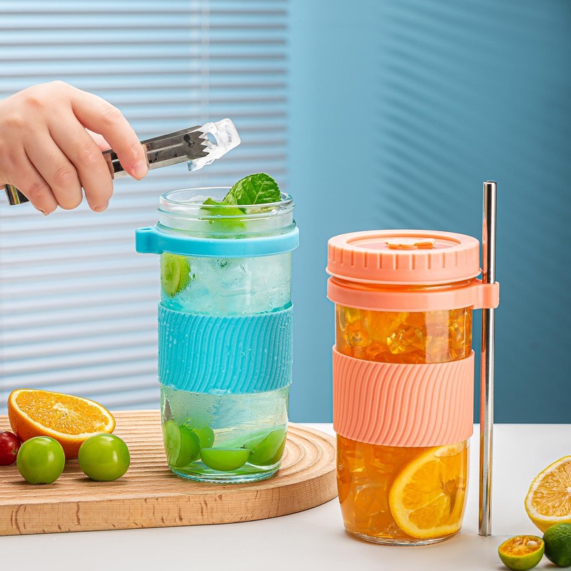 - 【Dishwasher safe】The wide mouth design is easy to clean, wash away drink residue easily by handwashing the glass mugs with soap and warm water. Our glass tea cup set comes securely bubble wrapped in a thick box, so any gifting plans will be a success! Our Leakproof Mason Jar is great for Christmas, Valentine's Day, Easter, Mother's Day gift. Perfect for family, office, outdoor and travel use.
