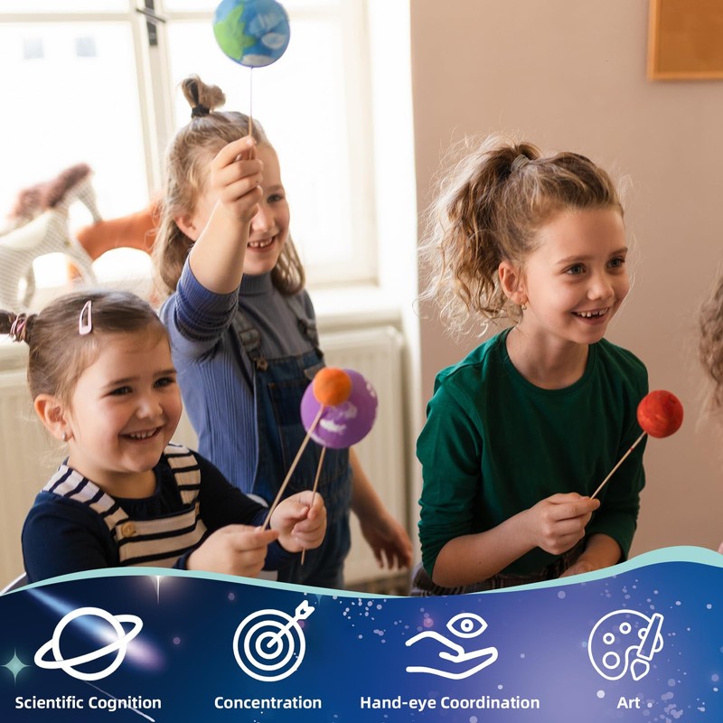 - Learning by PlayingThe solar system project kit helps kids build skills through fun. Creating planets not only improves kids hand-eye coordination and focus, but also boosts their scientific knowledge and artistic skills.