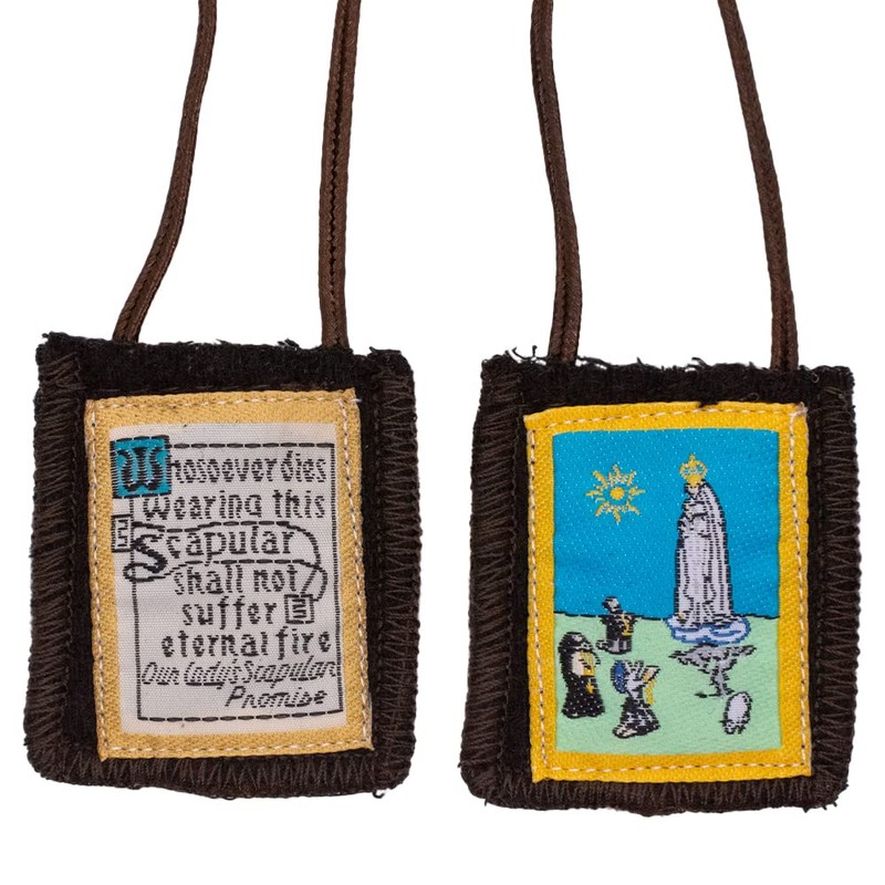 Wool Brown Scapular | Catholic Wearable Devotional | Great Christian Gift for Religious Milestones Such as First Holy Communion and Confirmation | Includes Enrolment Paper (Our Lady of Fatima)