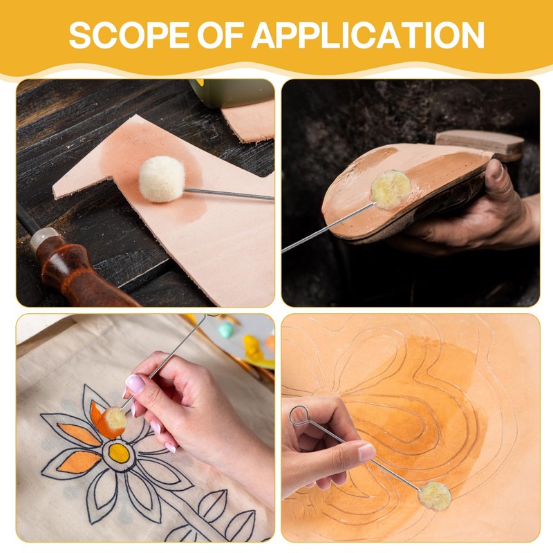 - Wool dauber applicator: Designed for even dye distribution, the soft wool dauber applicator balls ensure a smooth, streak-free finish on leather surfaces. Perfect for waxes, glues, and edge paints.
