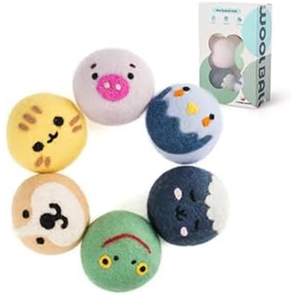 Wool Dryer Balls XL Size 6 Pack - Fun Dryer Balls with Animal Faces Handmade New